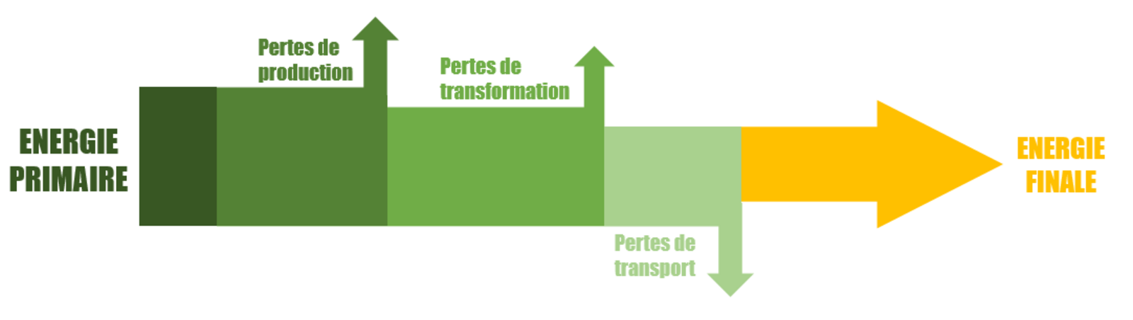 Premièrement, les consommations énergétiques présentées sont des consommations d’énergie finale. C’est-à-dire qu’il s’agit de l’énergie directement consommée par l’utilisateur final à son point d’utilisation, après extraction, transformation et transport (énergie primaire).